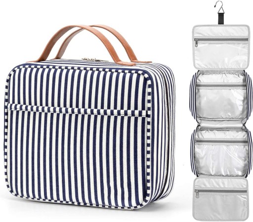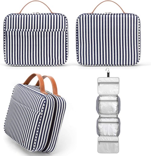 - Wisząca kosmetyczka z miękkimi, wyściełanymi paskami, niezawodne podwójne zamki błyskawiczne.
