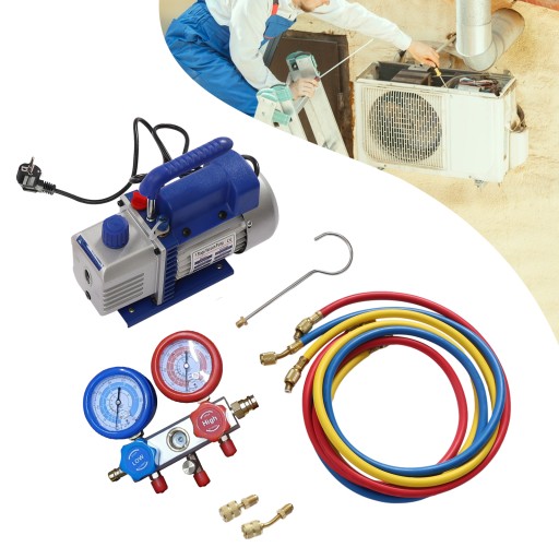 Pompa próżniowa i zestaw manometrów - zestaw chłodniczy klimatyzacji
