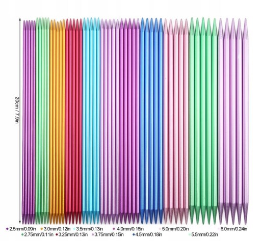 ⏺druty dziewiarskie Model: 5 x (około 2,5 mm/0,09 cala, około 2,75 mm/0,11 cala, około 3,0 mm/0,12 cala, około 3,25 mm/0,13 cala, około 3,5 mm/0,13 cala, około 3,75 cala mm/0,15 cala, około 4,0 mm/0,16 cala, około 4,5 mm/0,18 cala, około 5,0 mm/0,20 cala, około 5,5 mm/0,22 cala, około 6,0 mm/0,24 cala)
