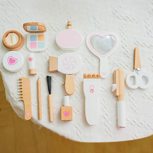 [Niezawodna jakość]: Drewniany zestaw do makijażu, materiały najwyższej jakości, gładka powierzchnia, bez zadziorów, dzieci mogą bawić się nim z pewnością.