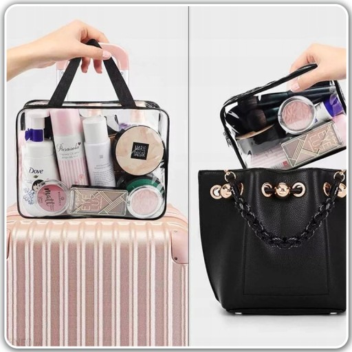 ⭐ Największa kosmetyczka może służyć również jako torebka, dzięki długiemu, czarnemu uchwytowi.