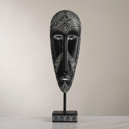 Statua maski afrykańskiej Ręcznie rzeźbiona ozdoba z żywicy na blat biurowy Półka domowa 12x7,5x41,5 cm