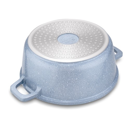 Zestaw garnków marmurowych Konighoffer Pollo Blue 8 elementów ma 2 materiałowe nakładki na uchwyty. Komplet pozwala więc na bezpieczne gotowanie i smażenie, zmniejszając ryzyko oparzenia dłoni. W zestawie znajdziesz naczynia o pojemności od 1,2 do 4,5 litra. Do garnków i rondla dołączono szklane pokrywki ze stalowym rantem, chroniącym przed wyszczerbieniem. Mają one również stylowe, nierdzewne uchwyty. Z kompletem garnków Pollo typu stone możesz gotować na każdym typie kuchenki. Elegancji dodaje mu granitowa powłoka nieprzywierająca oraz wykończenie aluminiowych korpusów stylizowane na marmur. Nagrzewają się szybko, a więc oszczędzisz czas i energię. Świetnie sprawdzą się w rodzinnej kuchni lub jako prezent. Są też dobrze zabezpieczone przed wysoką temperaturą i równomiernie przewodzą ciepło. Masz również możliwość użytkowania garnków (nie rondla!) w piekarniku maksymalnie w 220 st. C. O ich bezpieczeństwie użytkowania oraz nietoksycznej konstrukcji dla środowiska stanowi oznaczenie PFOA Free. Aby nie uszkodzić stołu lub blatu kuchennego wystarczy wykorzystać 2 podkładki pod gorące naczynia znajdujące się w zestawie. Rączka rondla jest wykończona tworzywem soft touch. Dzięki temu nie ślizga się w dłoni i nie nagrzewa się, a także jest przyjemna w dotyku. Produkt ma rekomendację Ewy Wachowicz. Jako ambasadorka marki Konighoffer, gorąco i z uśmiechem poleca go ona do domowego użytku. Razem z nim zdobędziesz twój przepis na dom. To jedna z najlepszych opcji w tej kategorii!