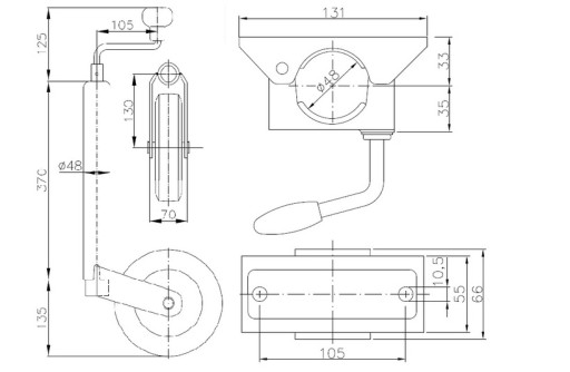 ОПОРНОЕ КОЛЕСО BUNTE С ЗАЖИМОМ ДЛЯ ЭВАКУАТОРА 200 кг