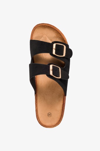 ЧЕРНЫЕ ЖЕНСКИЕ ТАПОЧКИ НА ПРОФИЛИРОВАННОЙ ПРОБКОВОЙ ПОДОШВЕ, ПЛОСКИЕ, размер 38