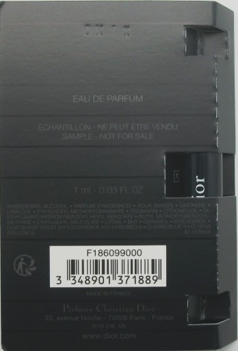 Próbka wody perfumowanej Dior Sauvage dla mężczyzn o pojemności 1 ml z atomizerem. Promocja! Przy zakupie 10 szt. Dodatkowo taka sama próbka gratis.
