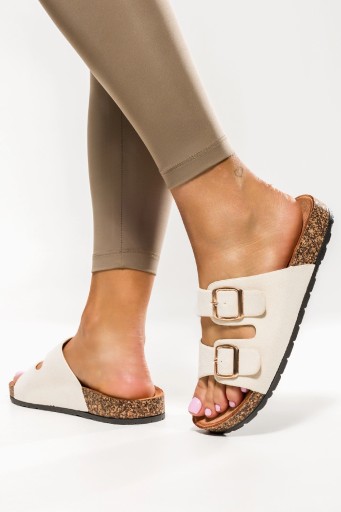 Beżowe klapki damskie model 2410-2 zostały wykonane z wysokogatunkowego materiału co gwarantuje doskonałą jakość i dopasowanie do stopy. Beżowe klapki - kluczowy element letniej garderoby! Dzięki swojemu wyjątkowemu designowi i niezrównanej wygodzie są idealnym wyborem dla osób ceniących sobie styl i funkcjonalność. Wsuwane klapki z paskami i ozdobnymi klamrami to absolutny must-have tego sezonu. Ich otwarty czubek pozwala stopom swobodnie oddychać nawet w najgorętsze dni, zapewniając niezrównany komfort. Profilowana korkowa podeszwa gwarantuje stabilność i amortyzację, co sprawia, że można w nich chodzić przez cały dzień bez uczucia zmęczenia. Te beżowe klapki świetnie komponują się z różnorodnymi stylizacjami, od casualowych po bardziej eleganckie. Doskonale sprawdzą się zarówno na plaży, jak i na spacerze po mieście czy spotkaniu ze znajomymi. Noszone do zwiewnych sukienek, spodenek czy jeansów dodadzą Twojemu lookowi niepowtarzalnego charakteru. Nie czekaj dłużej - spraw sobie komfort i styl z beżowymi klapkami.