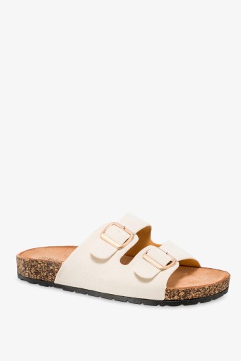 BEŻOWE KLAPKI DAMSKIE NA PROFILOWANEJ KORKOWEJ PODESZWIE PŁASKIE
