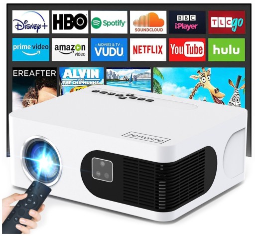 ✅ Projektor Zenwire E601H z systemem ANDROID SMART TV z dostępem do popularnych aplikacji jak: Netflix, Youtube, Prime Video, HBO GO, Spotify, Disney+ i wiele innych! Odtwarzaj swoje ulubione filmy bezpośrednio na projektorze bez konieczności używania dodatkowych urządzeń!