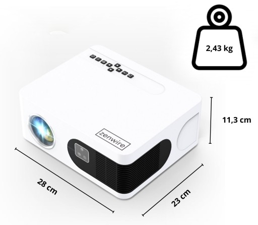 ⭐WYMIARY FIZYCZNE PROJEKTORA ZENWIRE E601H⭐