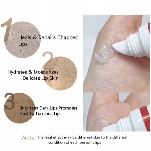 Uwaga: Jeśli usta są bardzo czarne, aby uzyskać dobre wyniki, konieczne jest ciągłe stosowanie. Rezultat zależy od rodzaju skóry