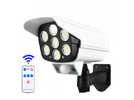 Wysokiej jakości atrapa kamery to urządzenie zasilane z panelu słonecznego co gwarantuje oświetlenie bez dodatkowego źródła zasilania. Wyposażona została w bardzo jasny panel 77 punktów LED COB o mocnym strumieniu światła.