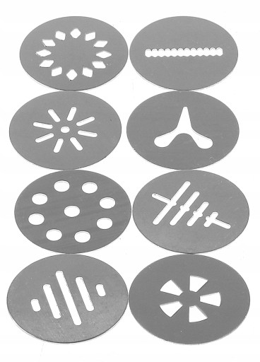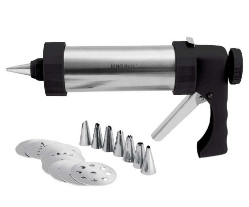 - Stalowe tłoczysko- ABS dźwignia- Regulowana grubość ciastek- 8 tarcz do ciastek- 8 dysz do dekorowania- Łatwe czyszczenie- Przesuwa ciasto przez cylinder w całości, bez zapychania- Łatwe trzymanie i kontrolowanie wyciskacza