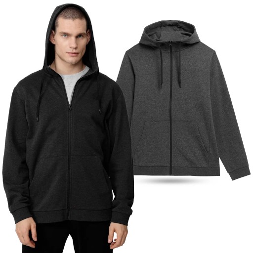 BLUZA MĘSKA 4F SPORTOWA Z KAPTUREM BAWEŁNIANA NA ZAMEK SS23M354