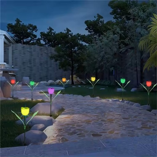 Солнечная садовая лампа, светодиод, датчик сумерек, разноцветные тюльпаны