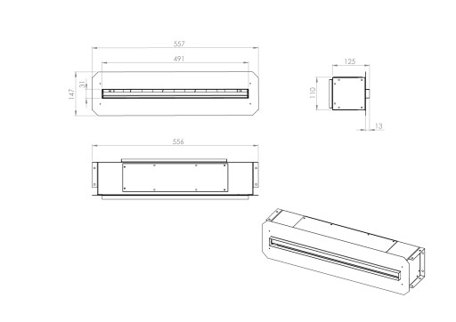 Линейный щелевой диффузор GK 500 мм 3x90 мм
