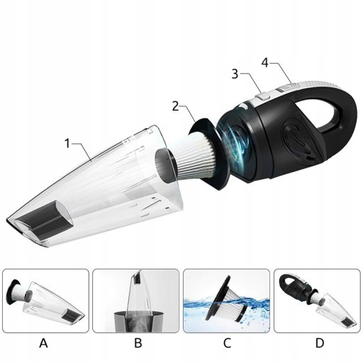 Ręczny odkurzacz samochodowy z wymiennymi końcówkami oferuje wiele funkcji, które sprawiają, że czyszczenie wnętrza samochodu staje się łatwe i skuteczne. 🧹