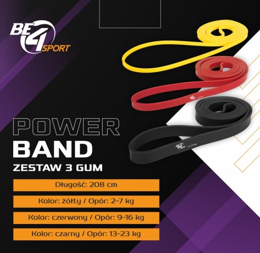 ZESTAW 3 GUM OPOROWYCH DO ĆWICZEŃ POWER BAND + ZACZEP NA DRZWI KOTWICA