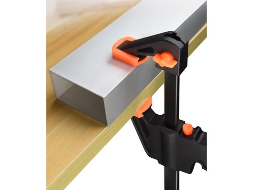 Ścisk stolarski szybkomocujący pozwala na precyzyjną obsługę. System szybkiego przesuwu umożliwia obsługę ścisku jedną reką. Posiada możliwość przełożenia górnej szczęki i używanie ścisku jak rozpieraka.
