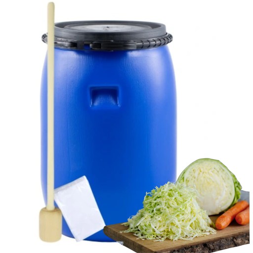 ПЛАСТИКОВАЯ БОЧКА ДЛЯ КАПУСТЫ 60Л МЕШОК + ПЕСТИК ПЛАСТИКОВЫЙ ЗАЖИМ