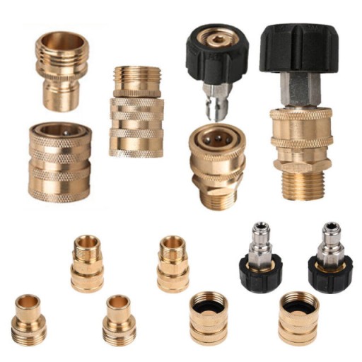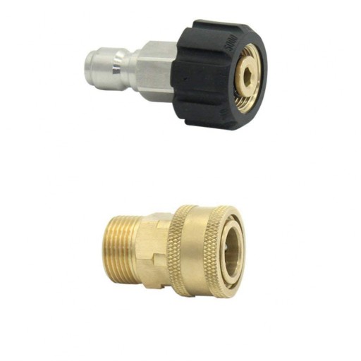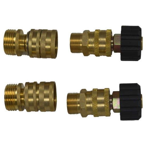 Zestaw szybkozłączy łączy wylot pompy z wężem myjki ciśnieniowej lub wąż myjki ciśnieniowej z pistoletem natryskowym, a dwa inne zestawy szybkozłączy przekształcają gwinty 3/4 cala w szybkozłączki. Podłącz standardowy wąż ogrodowy do wlotu wody pompy myjki ciśnieniowej co 3/4 cala.