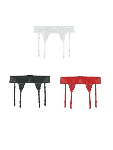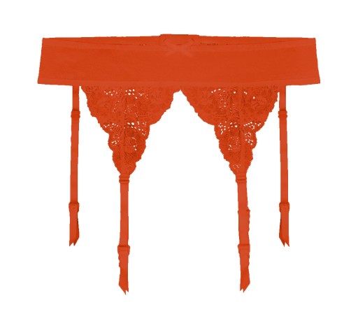 Wąski pas do pończoch uszyty z gładkiej siateczki, na który naszyte są koronkowe trójkąty połączone u góry kokardką.
