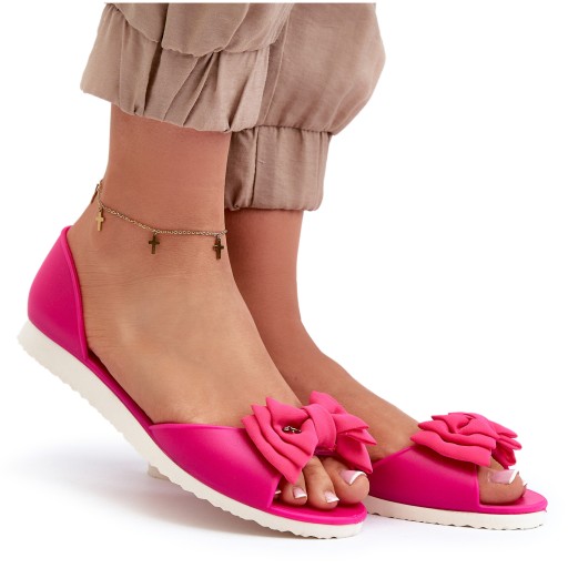 ЖЕНСКИЕ РЕЗИНОВЫЕ БАЛЕТКИ С БАНТОМ, FUSCJA 38