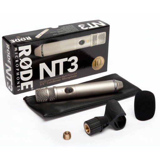 RØDE NT3 to mikrofon pojemnościowy z wkładką o średnicy 3/4 cala, przeznaczony do pracy w studiu, na scenie i w terenie. Mikrofon może być polaryzowany zarówno z pomocą standardowego napięcia Phantom, jak i baterii 9 V.