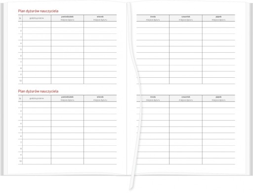 - plan dyżurów nauczyciela - tabela na I i II semestr