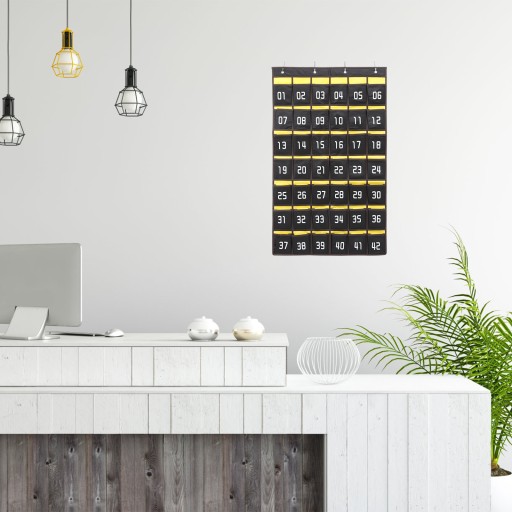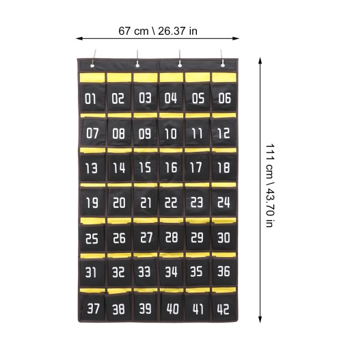 Jest to torba do przechowywania telefonu komórkowego, wykonana z wysokiej jakości tkaniny, z wieloma kieszeniami, każda z kieszeni jest zakodowana numerem. W zestawie 4 haczyki, łatwe do zamontowania na desce, biurku, szafie lub nad drzwiami. Nadaje się do użytku w klasie.