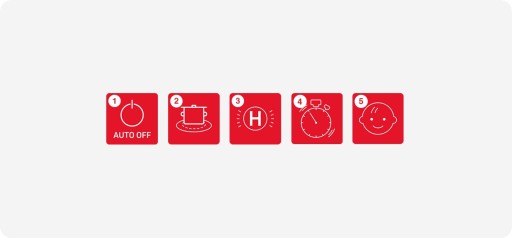 - Wyłącznik bezpieczeństwaBezpieczne gotowanie? Zadba o to system automatycznego wyłączania pól grzejnych w przypadku ich przegrzania lub zalania panelu sterowania.
