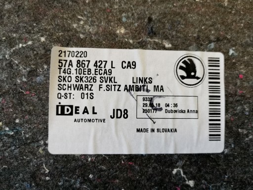 SKODA KAROQ KAR 2018R 1.0 TSI 85KW БАГАЖНИК СТОРОНА ЛЕВАЯ ЗАДНЯЯ 57A867427L