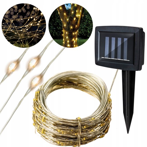GIRLANDA SOLARNA 12m OGRODOWA DRUCIKI ŁAŃCUCH 100 LED