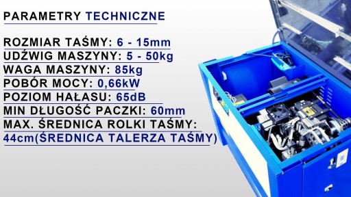 Bandownica jest ustawiona na taśmę 12mm o grubość 0,6mm. Przy innym rozmiarze taśmy maszynę trzeba będzie wyregulować.