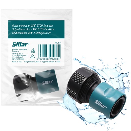 SZYBKOZŁĄCZKA SILLAR Z FUNKCJĄ STOP ŁĄCZNIK NA KRAN DO WĘŻA 3/4"