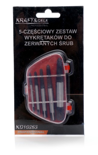 Profesjonalny zestaw wykrętaków do zerwanych śrub polskiej marki Kraft&Dele o oznaczeniu KD10263. Produkt stworzony z myślą o użytkownikach domowych, warsztatowych oraz zakładów pracy.