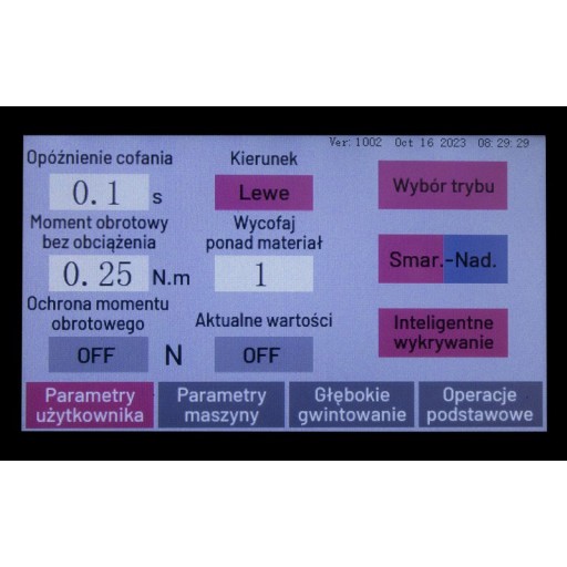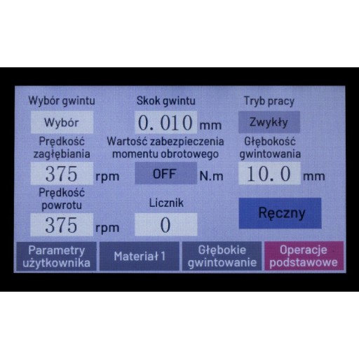 Gwinciarka posiada prostą i kompaktową konstrukcję, wyposażoną w skrętną głowicę, co zwiększa możliwości jej zastosowania. Napęd urządzenia jest zrealizowany za pomocą serwonapędu o dużym momencie obrotowym, co zapewnia silne i niezawodne działanie. W celu obsługi urządzenia, Ramię gwintujące zostało wyposażone w dotykowy panel sterujący z menu dostępnym w języku polskim. Ten intuicyjny panel umożliwia łatwe programowanie parametrów gwintowania, takich jak prędkość obrotowa, kierunek gwintowania oraz głębokość nacinania gwintu.