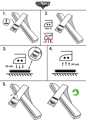 3. Przyłóż żelazko bezpośrednio na folię ochronną belki i mocno dociskaj przez 30 sekund bez przesuwania.