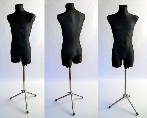Manekin jest doskonały do ekspozycji odzieży męskiej w rozmiarze M lub L.