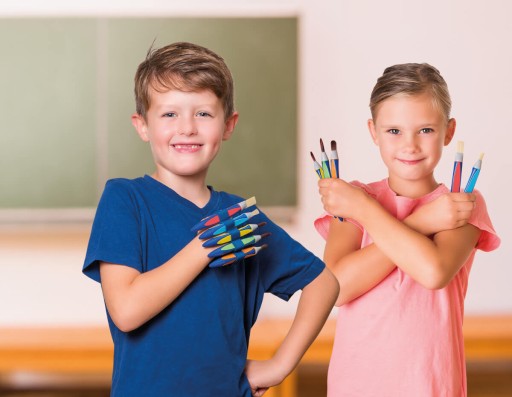- Trójkątny kształt pędzelków zapobiega ich stoczeniu się ze stołu podczas malowania