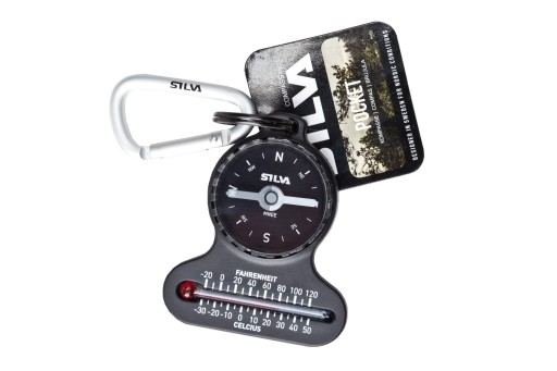 Niewielki kompas z karabinkiem i termometrem wyskalowanym w stopniach Celsjusza i Fahrenheita. Można go doczepić do ubrania, torby czy plecaka.