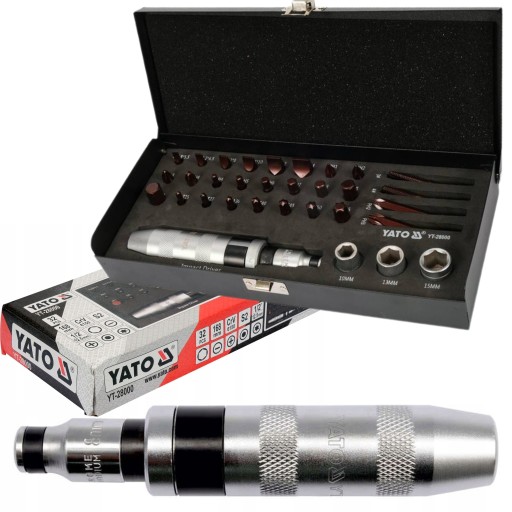УДАРНАЯ ОТВЕРТКА YATO СО СМЕННЫМИ НАКОНЕЧНИКАМИ НАБОР ИЗ 32 МЕТАЛЛОВ YT-28000