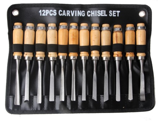 ZESTAW DŁUT RZEŹBIARSKICH DO DREWNA SNYCERSKIE STOLARSKIE ETUI ZESTAW 12 SZTUK