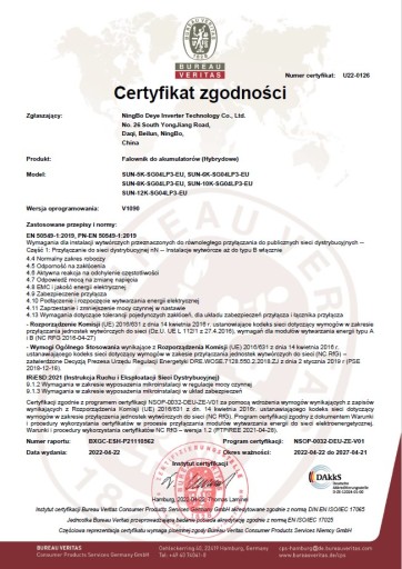 - Bezpieczeństwo EMC / Norma: IEC/EN 61000-6-1/2/3/4, IEC/EN 62109-1, IEC/EN 62109-2