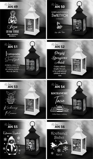 1. Po zakupie latarenki w informacji od kupującego lub wiadomości prywatnej prosimy o napisanie nam wybranego koloru latarenki ( CZARNY lub BIAŁY ) numeru wybranego wzoru dostępnych poniżej ( np. AN 1), oraz danych do personalizacji (np. od kogo/data).