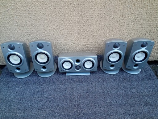 Ciężki komplet Kolumn audio bez maskownic : SONY SS-LAC305ED + 4X SS-LA300ED . Bardzo dobre brzmienie i duża moc . rozwarstwienie krawędzi głośnika centralnego i przy-rysana kopułka jednego głośnika !