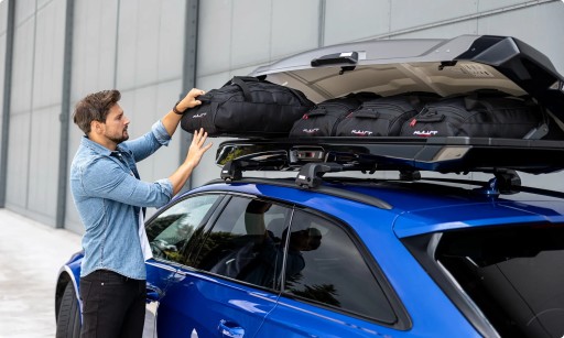 Torby dedykowane do boksu dachowego ułożone w zestaw nie przemieszczają się podczas podróży, co jest szczególnie istotne podczas gwałtownych manewrów.
