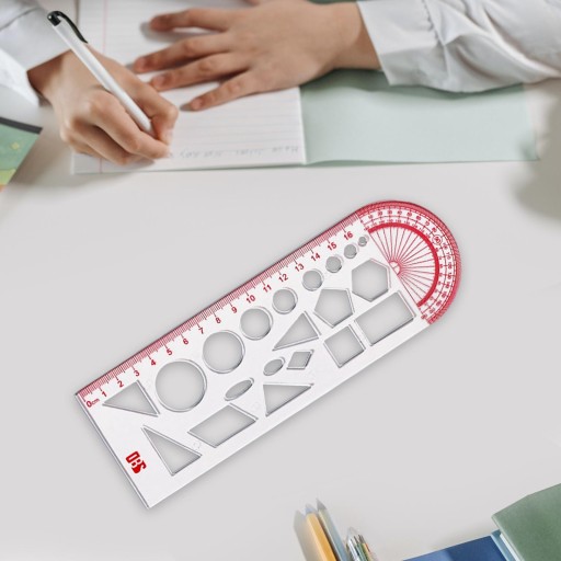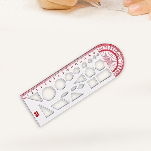 [Wielofunkcyjna linijka]: wielofunkcyjna linijka geometryczna, różne kształty pozwalają rysować różne wzory, wielofunkcyjne szablony rysunków, szablony budynków, linijka matematyczna.