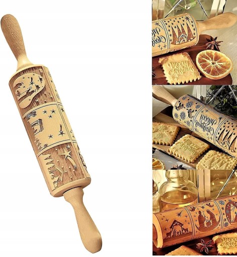 Idealny rozmiar: Wałek do ciasta to tradycyjny i optymalny rozmiar z grawerem na dużej powierzchni. Miara 35 cm z rączkami, część tłocząca 18cm, średnica 6 cm.(Wzór graweru jest pogłębiony do 1,8mm)