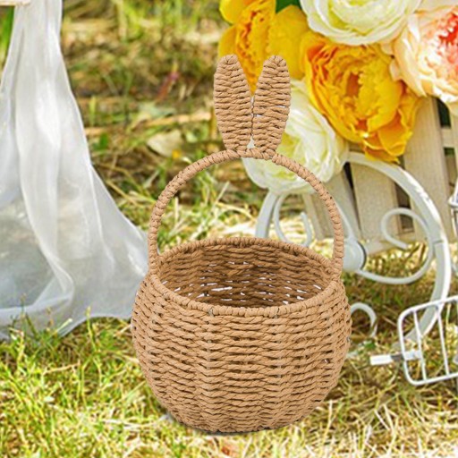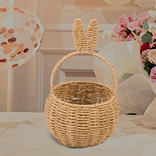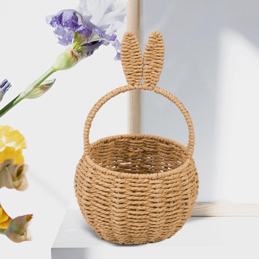 [Uchwyt z dekoracją uszu króliczka] Przenośny kosz do przechowywania z uchwytem z dekoracją uszu króliczka, łatwy w transporcie i wygodny do przenoszenia